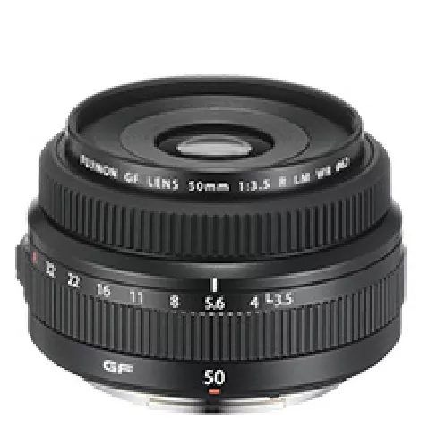 G卡口鏡頭 如:GF50mm F3.5 R LM WR,其是GF鏡頭陣容中最小、最輕量級的(335g) 的鏡頭,最大光圈為F3.5,焦距50mm(相當(dāng)于35mm格式中的40mm),此款為定焦鏡頭。