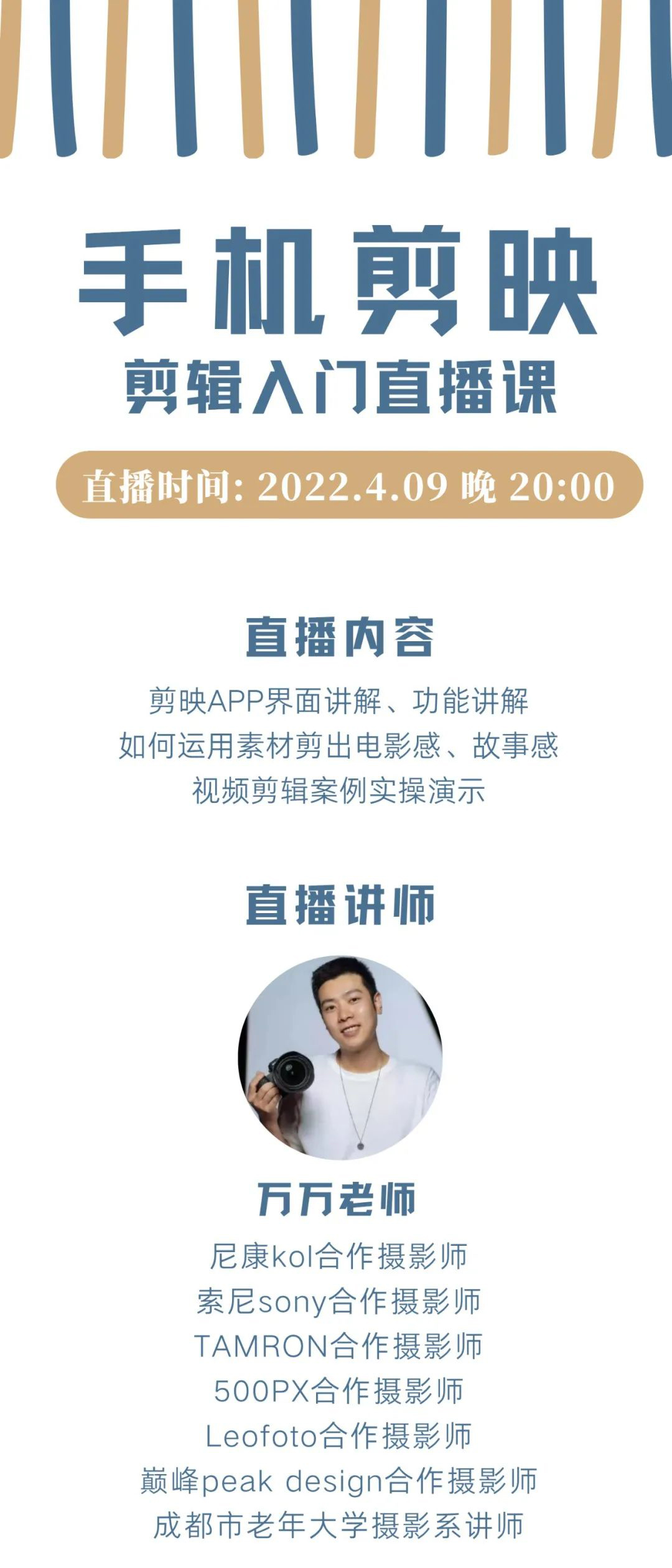 首頁 » 新聞資訊 » 活動回顧 4月9日|剪映入門直播課等你來! 發(fā)表日期:2022-04-17 瀏覽:2714 -迪比特攝影俱樂部地址-成都一環(huán)路南二段17號A世界五樓A8 515 分享 0