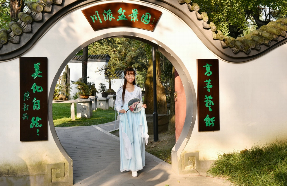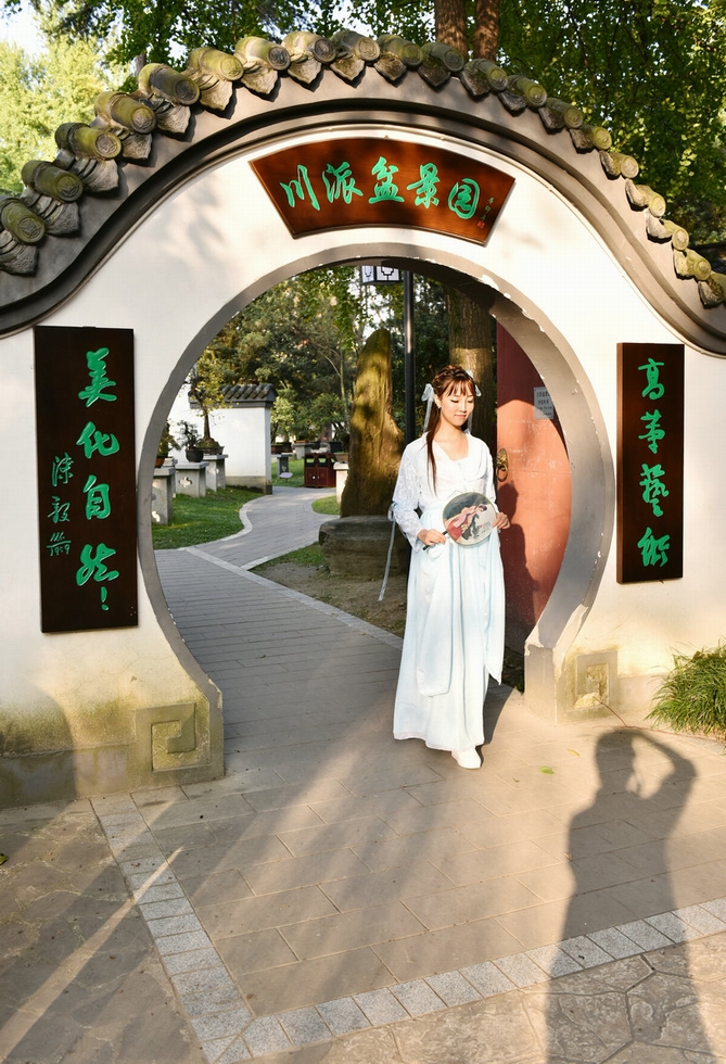 百花潭外拍活動作業(yè)五:閑庭信步盆景園的古裝美女