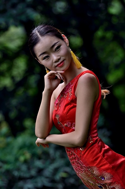 蜂腰美女孔雀裙