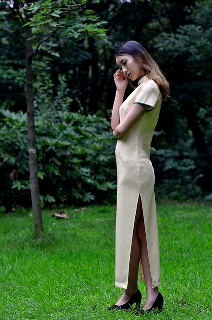 穿黃旗袍的美女:(1)在小樹林