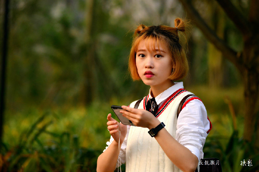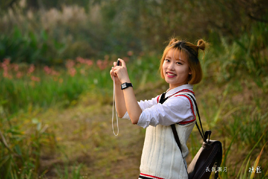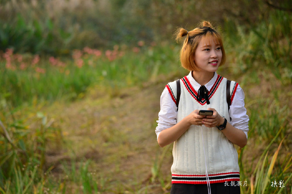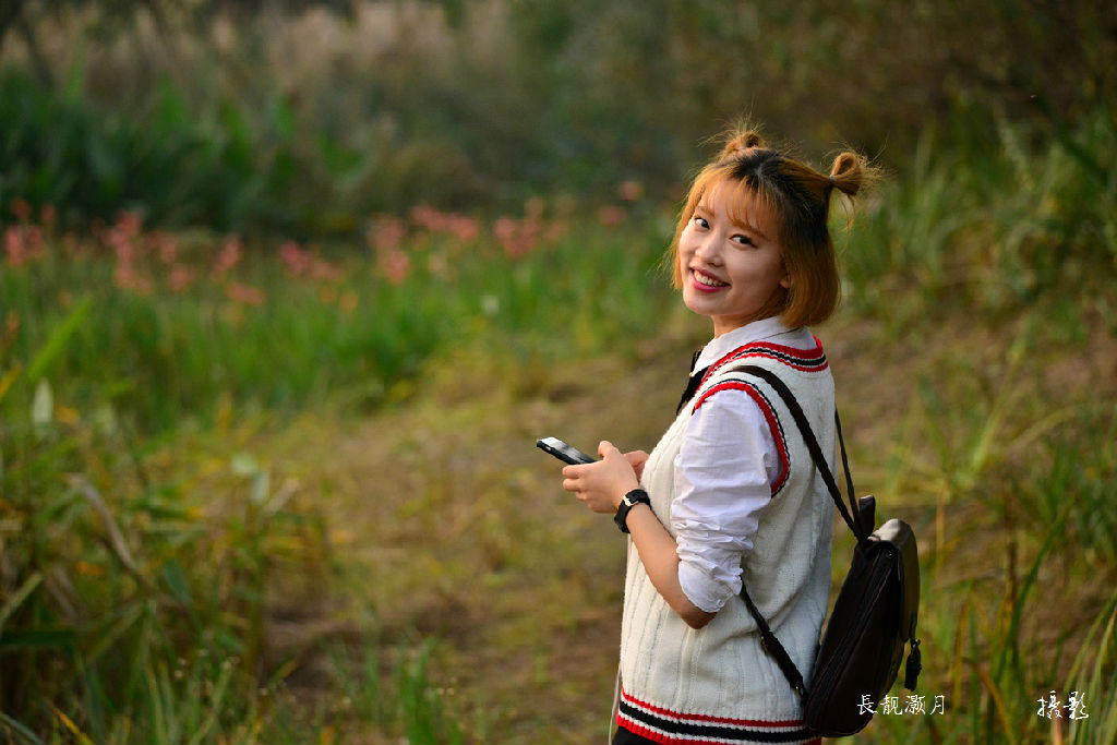夕陽下的美女