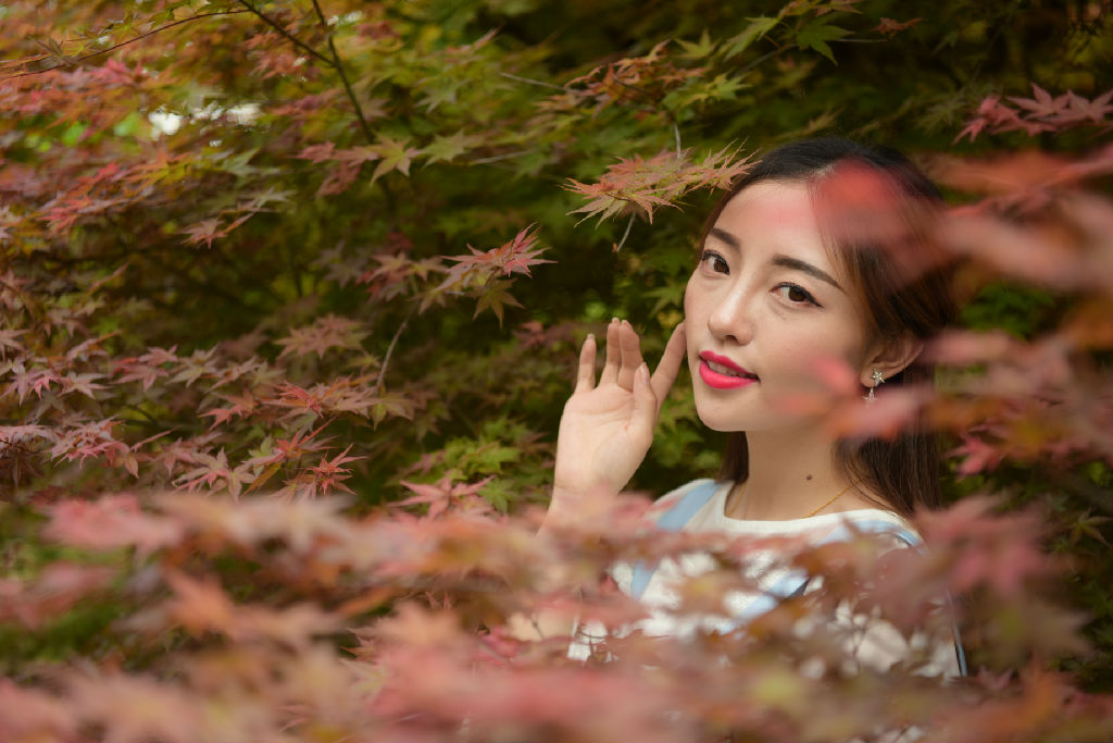 楓葉留丹春意濃