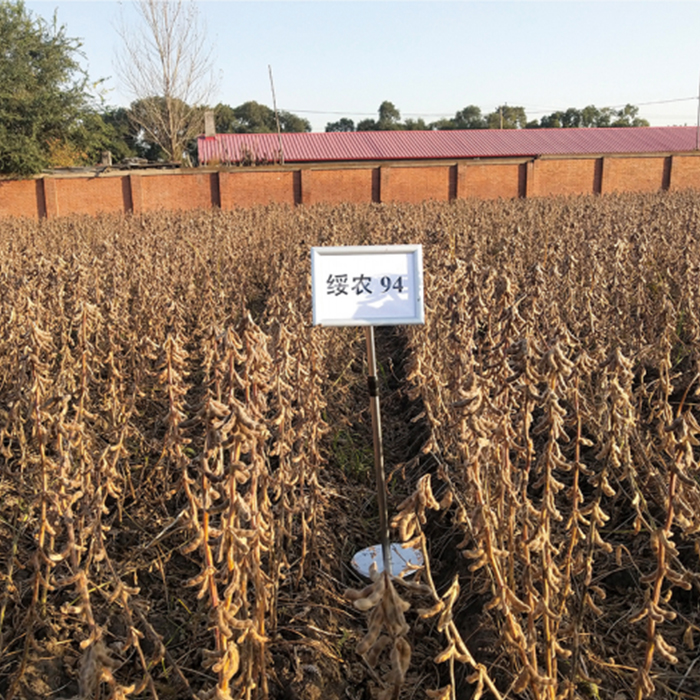 高蛋白品種,紫花尖葉,灰色茸毛,亞有限結(jié)莢習(xí)性,株高70厘米左右無(wú)分枝,莢彎鐮形,成熟時(shí)呈褐色。種子圓形,種皮黃色,種臍黃色,無(wú)光澤,百粒重21.1克左右。兩年平均品質(zhì)分析結(jié)果:蛋白質(zhì)含量44.01%,脂肪含量18.85%。兩年抗病接種鑒定結(jié)果:中抗灰斑病。在適應(yīng)區(qū)出苗至成熟生育日數(shù)116天左右,需≥10°C活動(dòng)積溫2300°C左右。